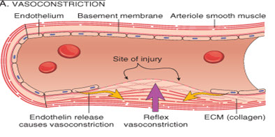 - Vasoconstriction reduces amount of blood flow through area, and limits amount of blood loss