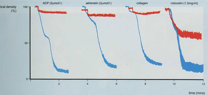 - Soluble adhesive proteins: fibrinogen; fibronectin; thrombospondin; B-thromboglobulin; von Willebrand Factor (vWF)