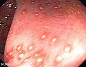 - innominate grooves: mucosal folds adjacent to lymph follicles that may mimic mucosal injury