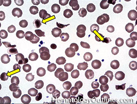 - must eval cellular elements of blood c smear, where drop of blood smeared and stained c Romanowsky polychrome dye or Wright-Giemsa stains (Leishman and May-Grunwald stains seldom used)