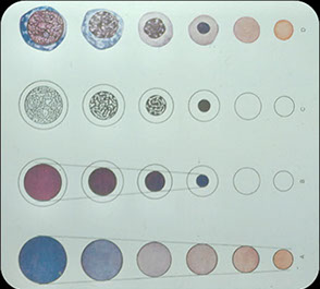 - iron is judged on the aspirate and clot c prussian blue stain on a scale of 4 (0= absent, 1 trace, 2-3 normal, 4 increased)