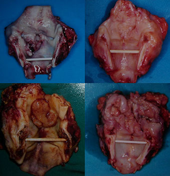 Late stage: Total laryngectomy, reconstruction, adjuvant post-op chemoradiation