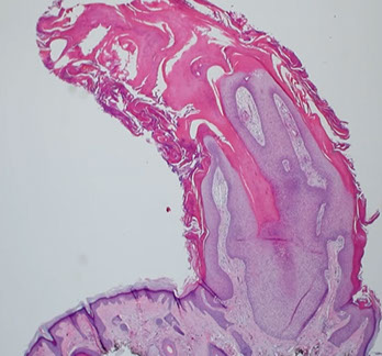 - can have basket-weave hyperkeratosis, or perhaps compact keratosis