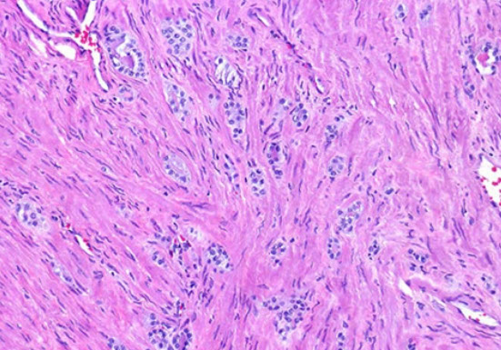 - stroma has sm muscle and fibrous tissue, which can sometimes have pallisading nuclei mimicking a neural tumor