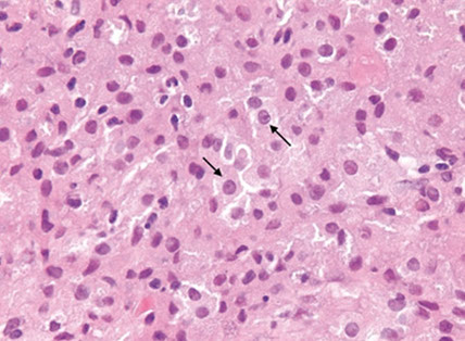 - rare or absent nuclear atypia (except for some degenerative atypia) and mits