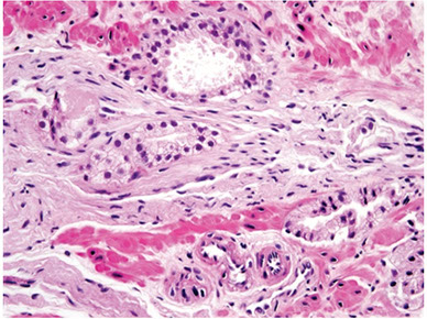 - small nerve bundles and occasionally ganglion cells and paraganglia can occasionally be seen in prostate