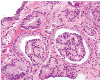 - basal cells can have prominent nucleoli, resembling high grade PIN