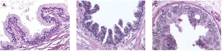 - if urothelium seen in more distal ducts, known as urothelial metaplasia (may be a misnomer)