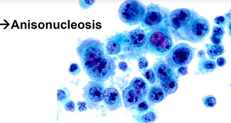 Chemotherapy causes nuclear enlargement with nuclear smudging and cytoplasmic enlargement with 2-tone cytoplasm