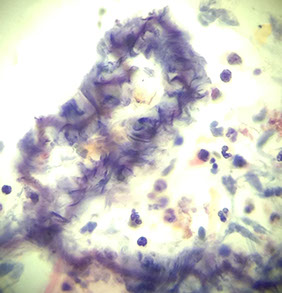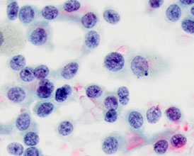Micro: Small cells (isolated, in chains and clusters) - about the size of lymphocytes