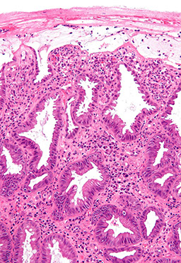 - hyperplastic reactive condition that is assoc c prior abdominal surgery, endometriosis, other inflammatory conditions