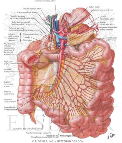 - ileum surrounded by more fat and lies lower in abdominal cavity