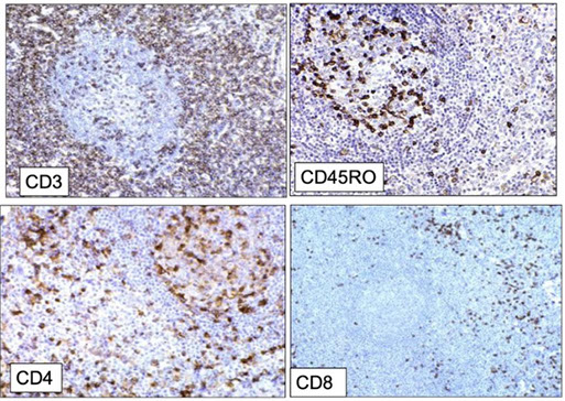 Mostly positive in T-cells in paracortex