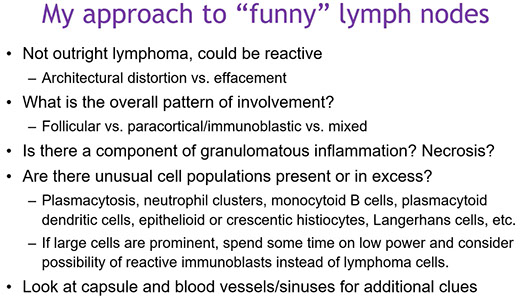 3. Sohani, Aliya. Reactive Lymphoid Hyperplasia: Diagnostic Pitfalls and how to avoid them. Society for hematopathology. https://www.society-for-hematopathology.org/web/education-virtual-curriculum-view.php?video_id=421986562