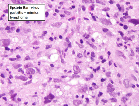 - other large B cell gastric lymphomas c large-cell rich infiltrat, should run flow, stain for CD117 / c-kit, CD20/3, and keratins, and S100, CD30