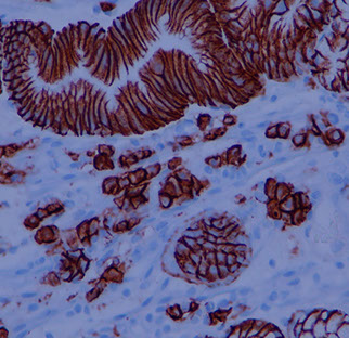 3) Sporadic, poorly differentiated; may have intact mucosa above tumor if sporadic