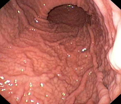 Rugae/ mucosa of different zones (cardiac, fundus, body, antrum, and pylorus) appear grossly different, depending on distentiability.