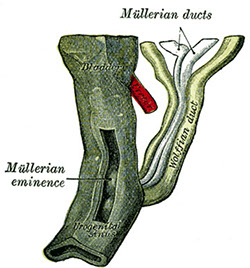 Paramesonephric ducts form main female genital ducts, that start as a vertical cranial part that opens into abdominal cavity, a horizontal part crossing the mesonephric duct and a caudal vertical part that fuses c contralateral side; the first two form the uterine tube and the caudal part the uterine canal