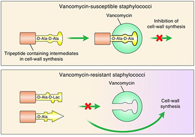 Resistance: Amino acid change of D-ala D-ala to D-ala D-lac