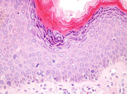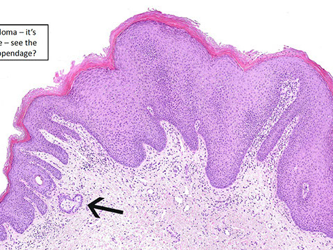 - overlying epidermis can get hyperkeratotic and sometimes papillomatous that can look like warts clinically