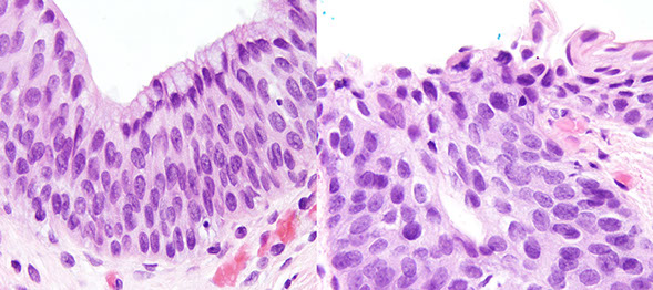 - also ddx Paget dz or mets (melanoma, urothelial ca [neg HPV ish], neuroendocrine small cell ca)