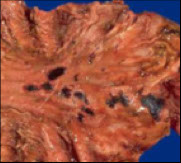Particularly gastric ulcers (known as Wischnevsky’s) – have a leopard skin pattern