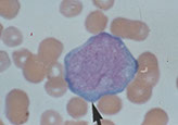 Size- 15-25 µm; N:C ratio- 7:1-4:1; May look like myeloblast