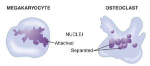 - involved in hemostasis, usually less than 4 microns in size, no nucleus, pink-purple cytoplsm c tiny uniform granules