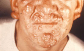 - Course is progressive and malign with nodular skin lesions, can be lethal