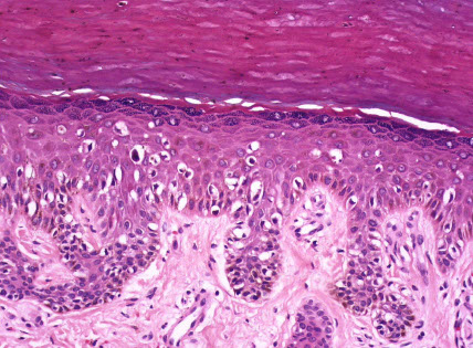 - can have basket-weave hyperkeratosis, or perhaps compact keratosis