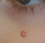 - 4/5 Males, usually on face, which grows quickly over about 2 months, then spontaneously regresses (slowly) over 6 months, leaving a depressed scar behind