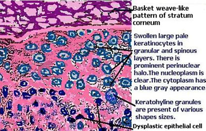 Micro: hyperkeratotic and atrophic epidermis