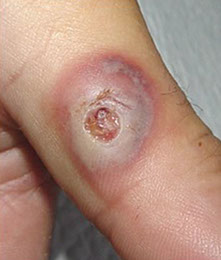 - older lesions ulcerated