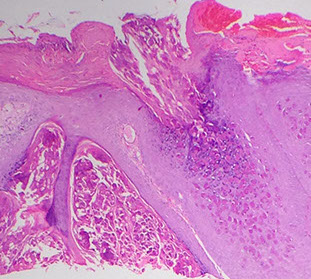Ulceration, chronic inflam c hyper- and parakeratosis surrounding ulcer