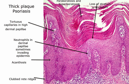 - takes only 7 days for skin to mature c psoriasis (vs 28 days normally)