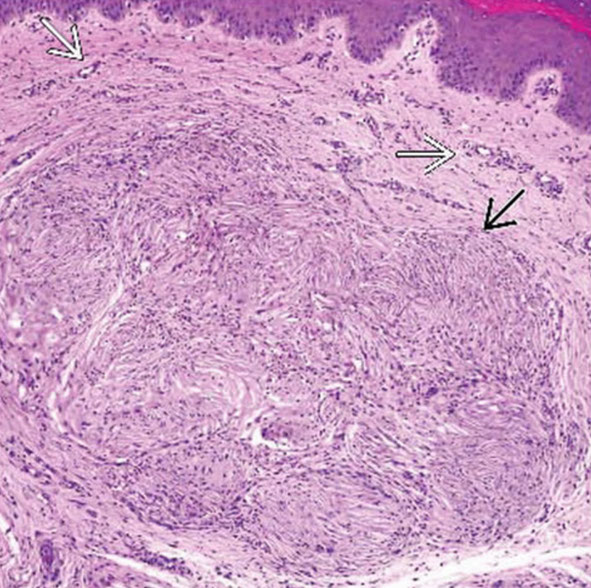 Pink bundles of spindle cells, can be: