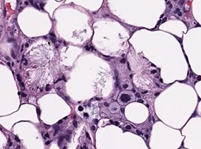 - adipocytes have clear space in them bc lipid is dissolved during processing