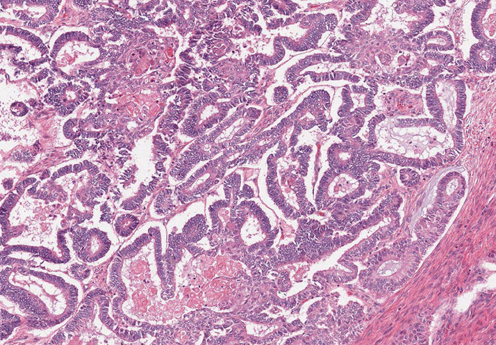 Micro: glands with b9 epithelium in sm muscle surrounded by minimal fibrous rxn