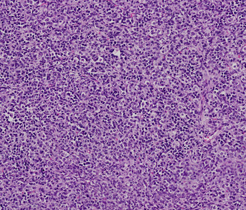 - undifferentiated neoplasm consisting of small monomorphic cells with a variable follicular-like component. A large cell component may occasionally be present.