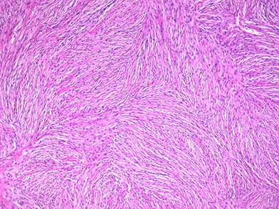 - Spindle-shaped, sparse cytoplasm, in whorls or storiform