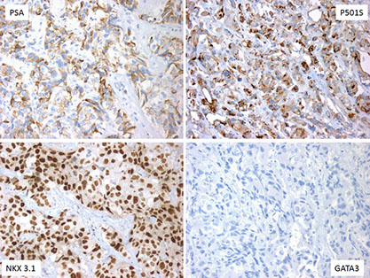 - negative PSA, PSAP, SMA, S100