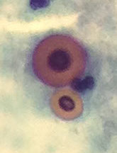 Sometimes called "asbestos bodies" are golden-black dumbbell-shaped thingies