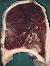 Large blobs in the lung that are not calcified (though they are in other organ systems); no known significance