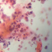 Micro: Small cells (isolated, in chains and clusters) - about the size of lymphocytes
