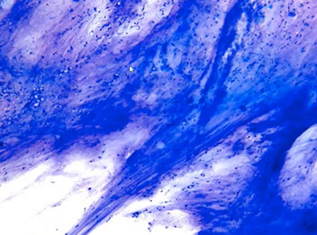Cyto: variable sizes though usually large 3D acellular hyaline matrix globules and linear branching c sharp borders