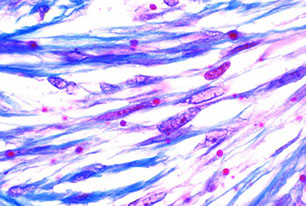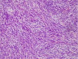 - bland uniform oval/spindle cells c little cytoplasm, small elongated nuclei no nucleoli in thin layers bwt collagen bands
