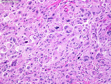 -- poor px c necrosis, lots of mits, rhabdoid features