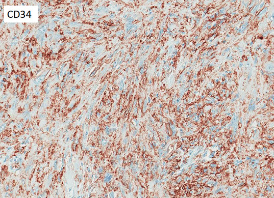 IHC: (+) STAT6 (very sens and spec), CD34 (cytoplasmic), CD99 (3/4), bcl2