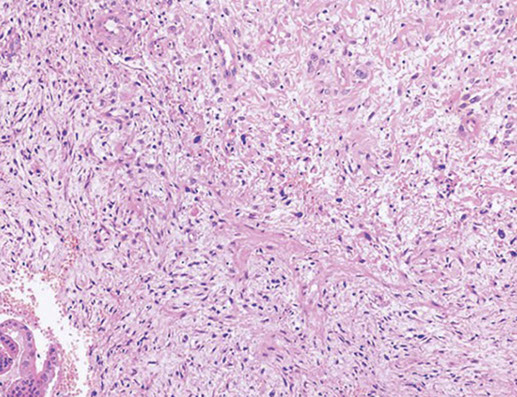 Uncommon in uterus, has spindly, stellate, or ganglion-like cells c minimal cytoplasm, variable myxoid stroma, lymph infiltrate, low mits