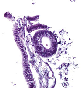 - endocervical tissue can be seen in endometrial bx, must distinguish b9 (EC microglandular hp) from cancer (EM AC c microglandular-oid look)
